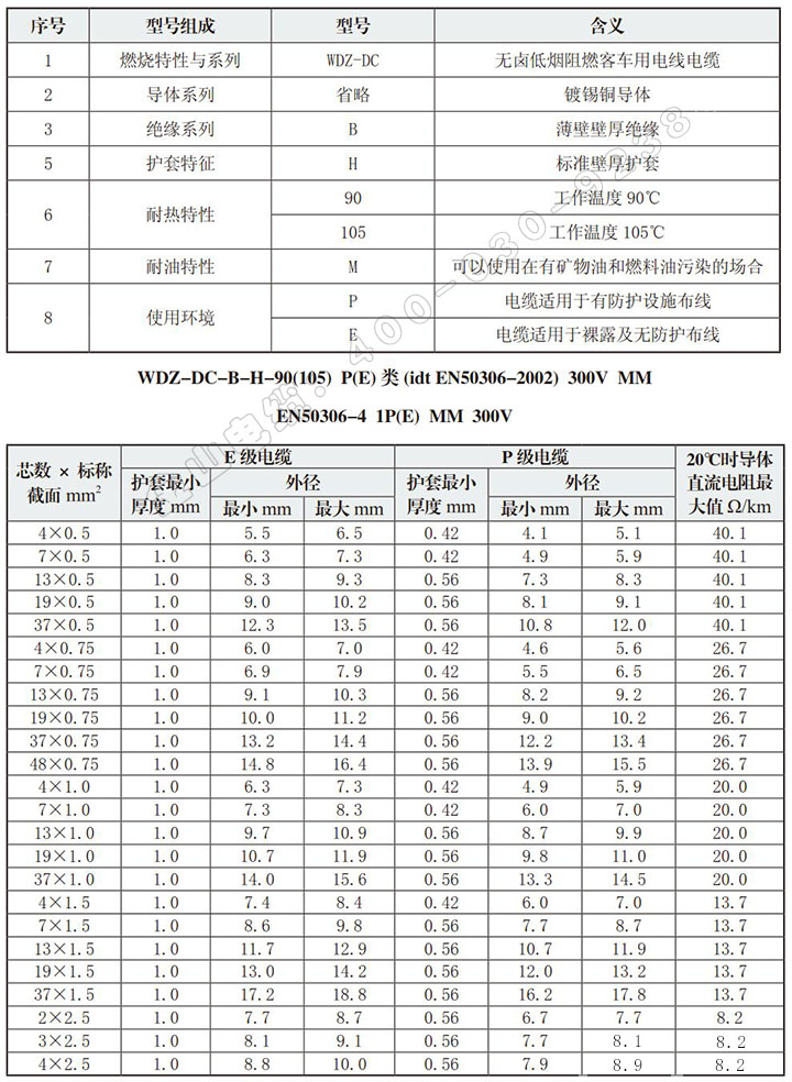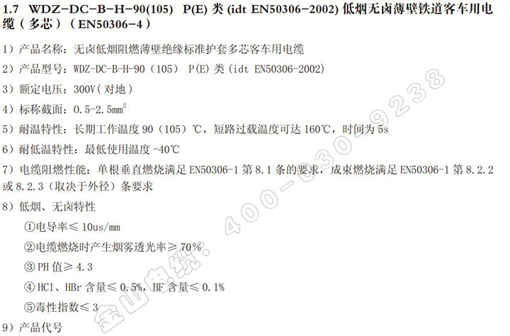 WDZ-DC-B-H-90(105) P(E)类 多芯动车组电线EN50306-4